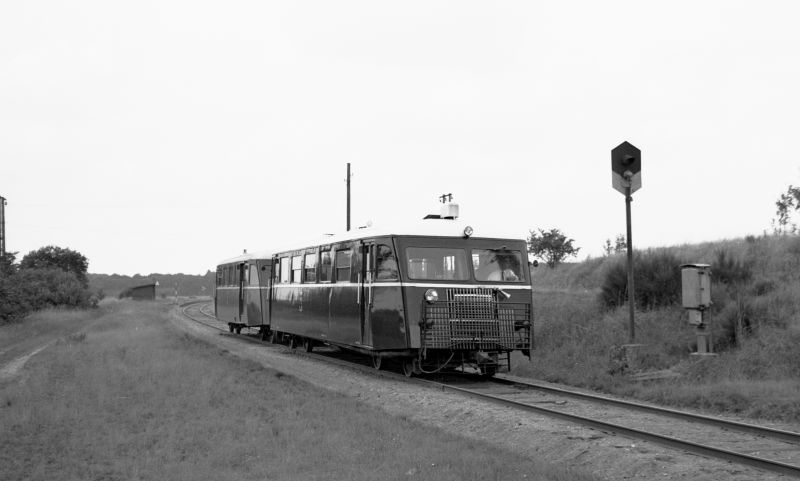Een af banens skinnebusser har netop forladt Hundsholt trinbræt d.8.8.1967 på rejsen videre mod Kolding.