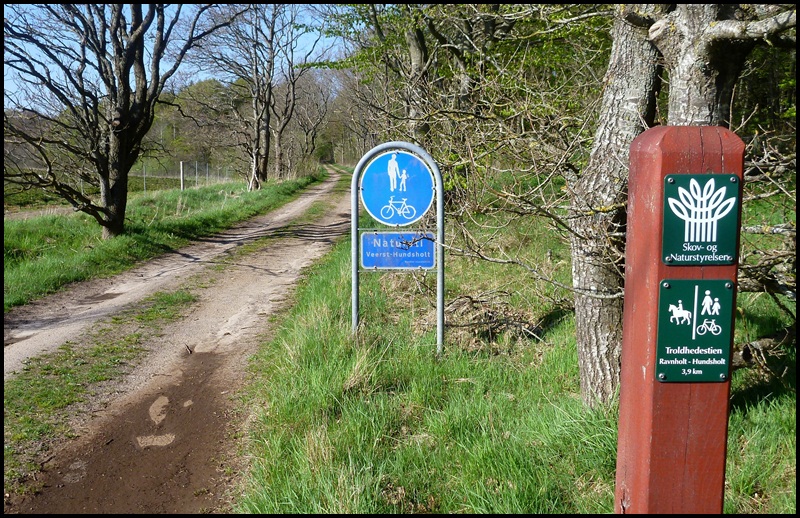 Skiltet som "Troldhedestien" Omfattende skiltning. |
